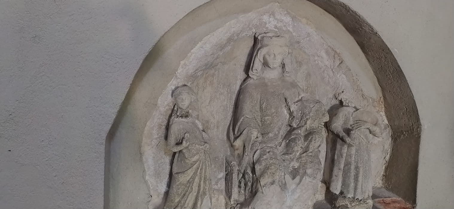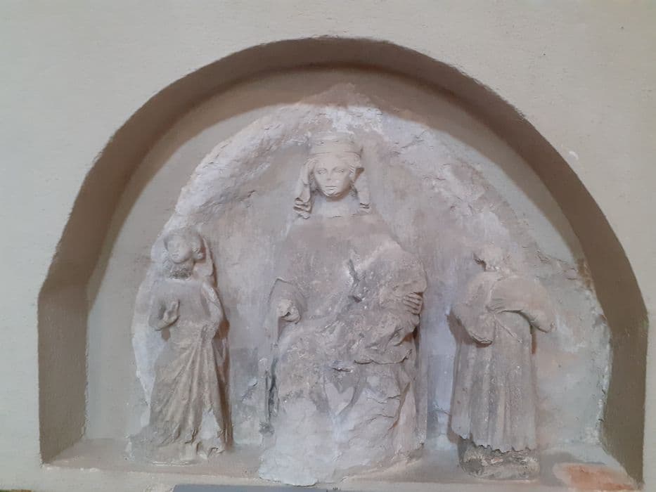 bas-relief : la Vierge à l'Enfant accompagnée d'anges
