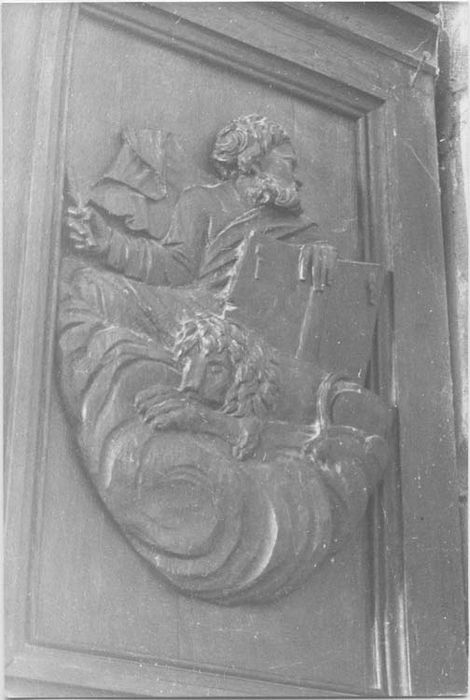 Représentation des quatre Evangélistes sur la chaire à prêcher.