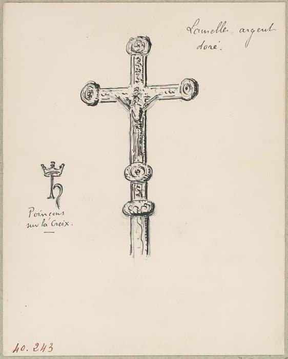 Croix en bois couverte de lamelles de vermeil, avec ornements repoussés.
