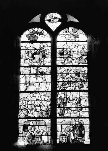Armoiries : blasons des donateurs (dans les deux panneaux inférieurs).