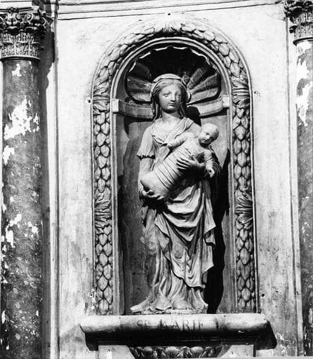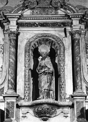 POP | Plateforme ouverte du patrimoineretable du maître-autel, tableau : La Descente de Croix, tabernacle, 5 statues : Vierge à l'Enfant, Saint Julien, Saint Martin, Saint Laurent, Saint Etienne