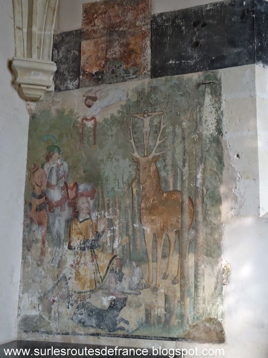 Les peintures se situent dans l'ancienne chapelle des seigneurs de Gallerande. La peinture de Saint georges terrassant le dragon est inspirée d'une gravure sur bois du Cabinet des Estampes de Berlin, datant de la 2e moitié du 15e siècle, dont l'auteur, qui signe du monogramme IA, est désigné sous le nom d'artiste de Zuvolle (Pays-Bas du Nord). La peinture représentant la Chasse de saint Hubert a été fortement restaurée au 19e siècle.