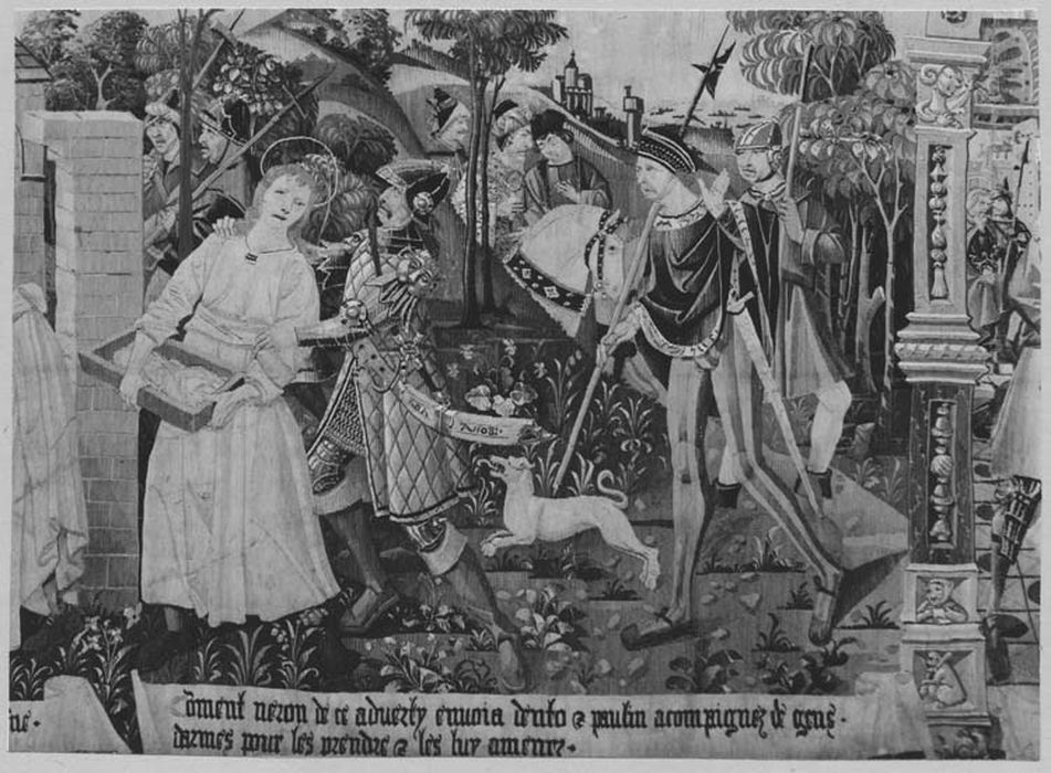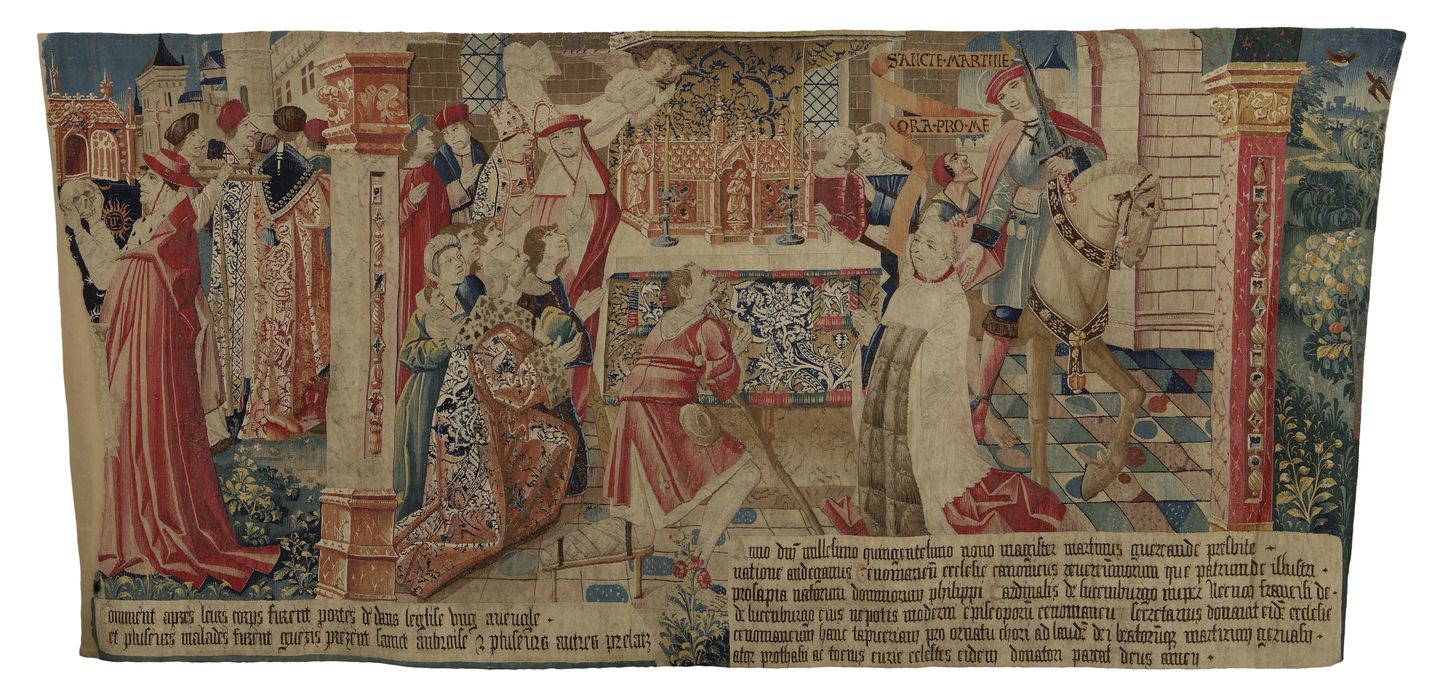 Tapisserie constituée de cinq pièces de dix sept scènes.