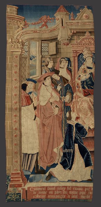 Inv. 1972, n°2, 4e panneau. Reproduit la moitié gauche de la 1ère scène du 1er panneau de la tenture dite de la Grande Série de saint Julien, classée le 6 juin 1902, mais elle en diffère par des détails importants.