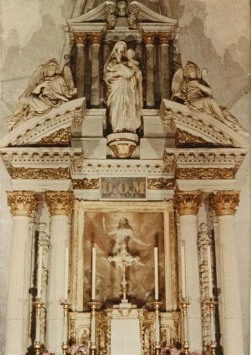 POP | Plateforme ouverte du patrimoineretable du maître-autel, tableau : La Résurrection, 3 statues : Vierge à l'Enfant, Anges adorateurs, tabernacle