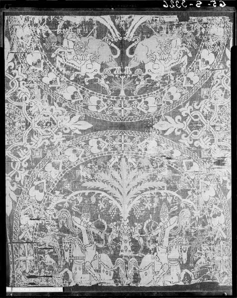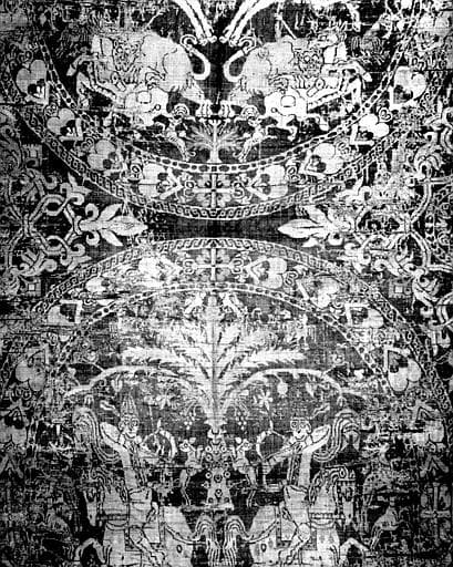 Le suaire consiste en deux morceaux de soie brodée (étoffe sassanide ou byzantine), se raccordant exactement. Le fond est bleu pâle, et les dessins sont de couleur jaune, vert clair, vert foncé, et violet pâle.