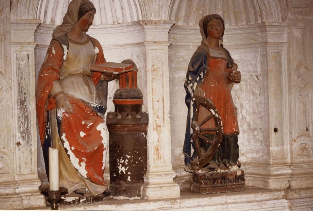 L'autel possède une contretable à deux niches, contenant deux statues, de sainte Barbe, et sainte Catherine.