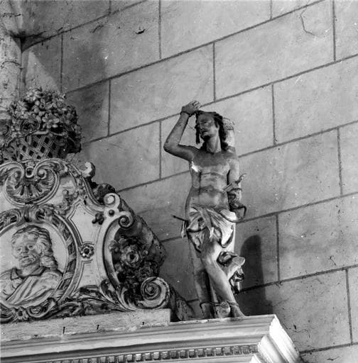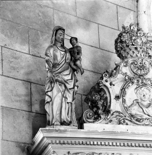 2 retables, statues : Vierge à l'Enfant, l'Education de la Vierge, saint Georges terrassant le dragon, saint Sébastien, bas-reliefs : la Vierge et saint Joseph (?), 2 tableaux : l'Annonciation et l'Adoration des Mages