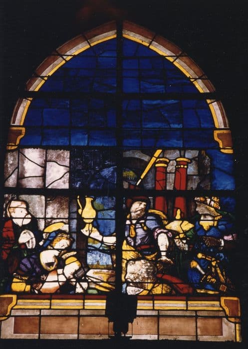 POP | Plateforme ouverte du patrimoineverrières : Vierge de Pitié, Le Christ ressuscité, Un donateur à genoux présenté par saint Philippe, L'Adoration des Mages