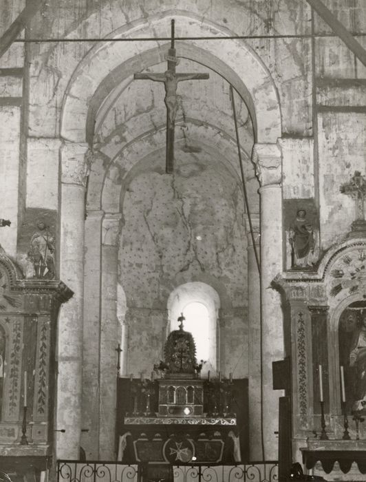 Tabernacle : le soubassement comporte un coffret à reliques. L'exposition est posée sur le tabernacle ; elle est dotée d'un socle à cinq faces.