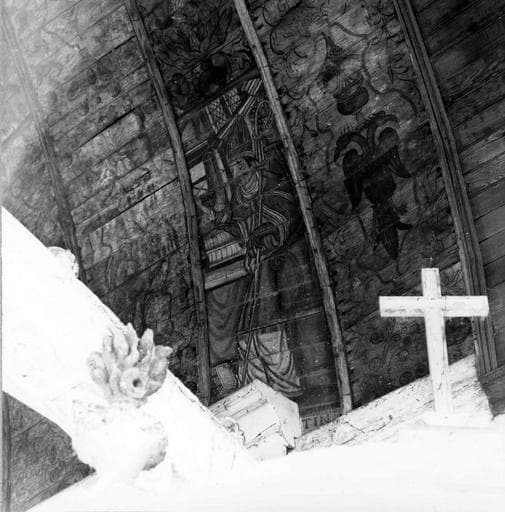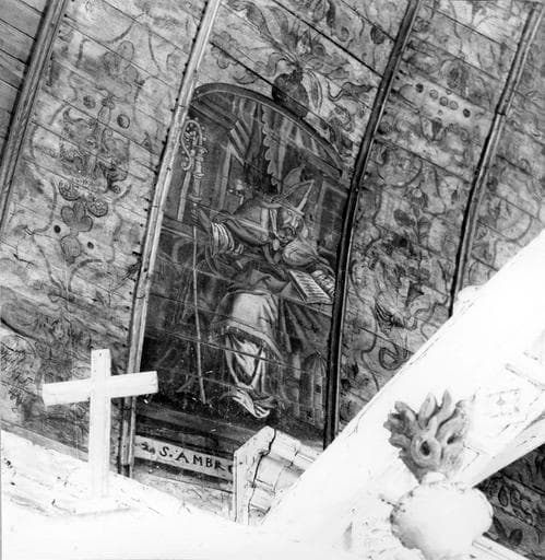 peintures : Les Quatre évangélistes, Saint Ambroise, Saint Pape, Saint Augustin et saint Jérôme avec des rinceaux de feuillages