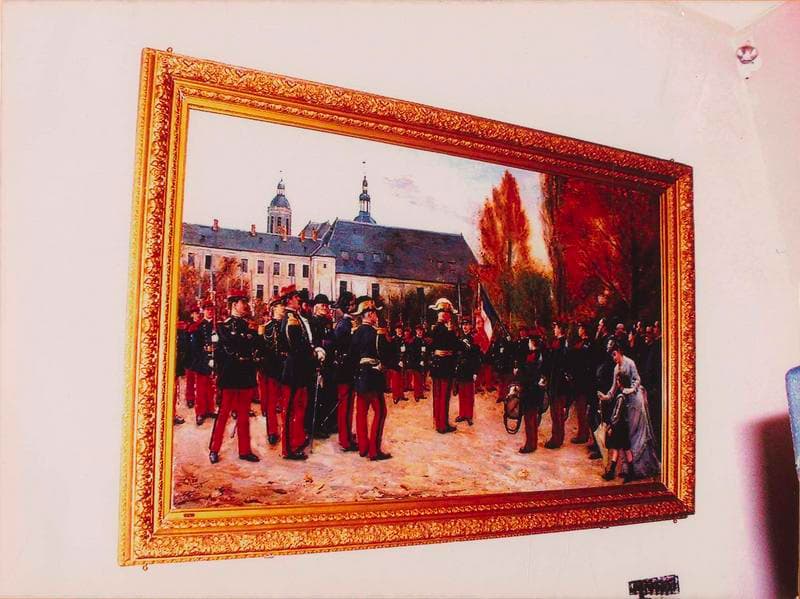 tableau et son cadre : Remise de la médaille militaire à l'élève Pichon