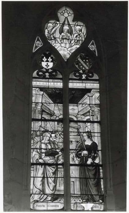 Quatre verrières de l'église contiennent des fragments de vitraux anciens.