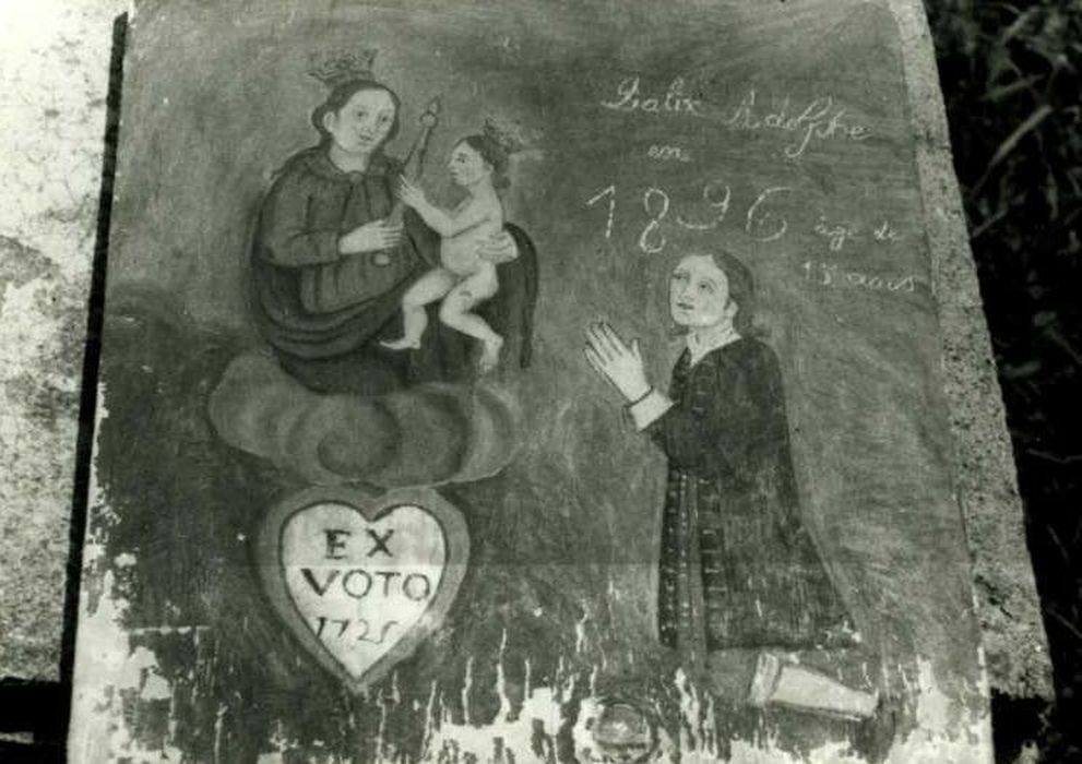 Graffiti sur la peinture : Dalix Adolphe en 1896 âgé de 15 ans. inscription et date : EX VOTO/1725.