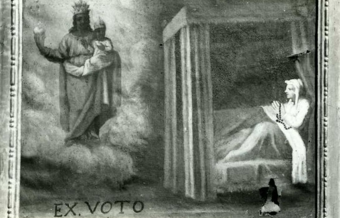 POP | Plateforme ouverte du patrimoineex-voto tableau, cadre : une malade priant la Vierge