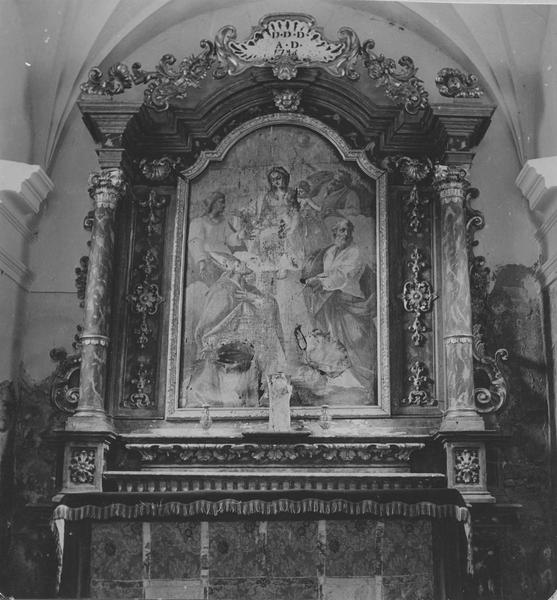retable et son tableau d'autel : la Vierge à l'enfant entourée de saint Pierre, sainte Anne et saint Grat