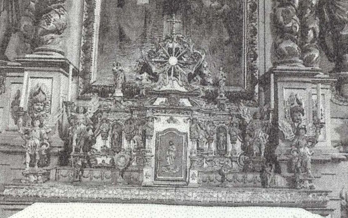 Le retable est oeuvre de Guy Parraud, l'attique est de Durand. Le retable abrite une toile. Le tabernacle est encadré par deux paires d'anges porte-flambeaux.