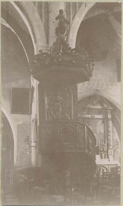 Cette chaire est supportée par un aigle en bois sculpté aux ailes déployées qui était autrefois sous la chaire de l'église Saint-Maurice.