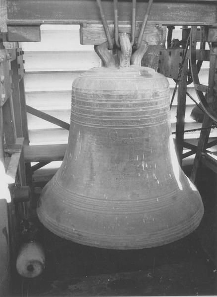 inscription et date : LAVDATE DEVM IN CYNBALI INBILIATIONIS OMNIS SPIRITVS LAVDET DOMINVM SANCTA AGATHA ORA PRO NOBIS 1639. Armoiries couronnées de 5 fleurs de lys et de deux lions.