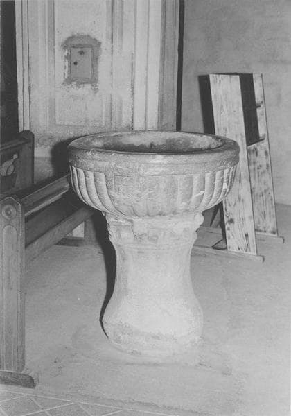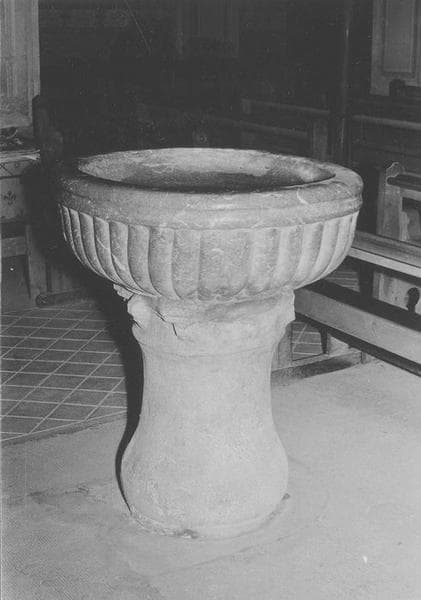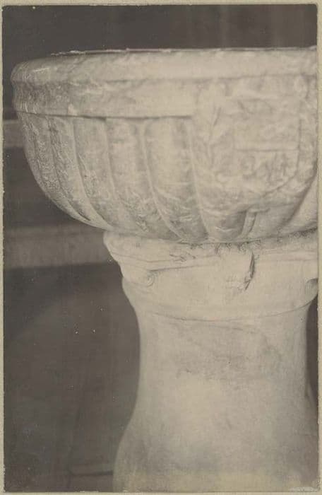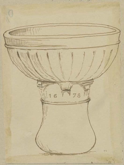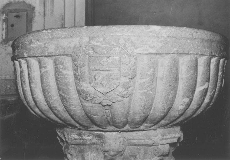 Se compose d'une vasque de forme ovale en marbre et d'un pédoncule en granit de forme arrondie se terminant au sommet par une sorte de chapiteau. La date est gravée sous la vasque. Sur cette dernière, des armoiries présentant 3 glands entourés de feuilles – identifiées comme celles de la famille de Loche – sont visibles.