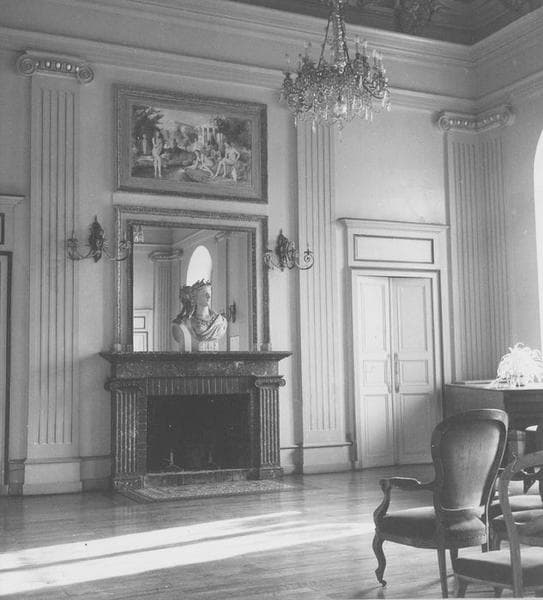 Dans la salle de réception, au premier étage de l'hôtel de ville.