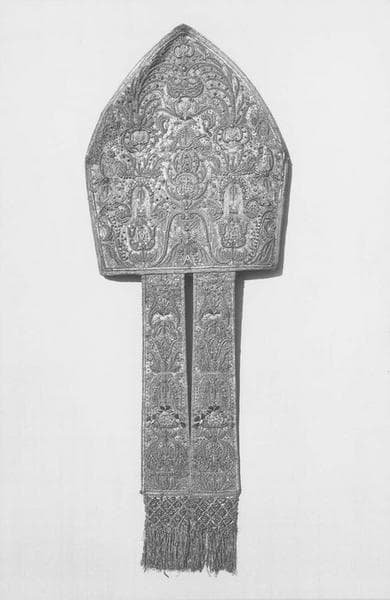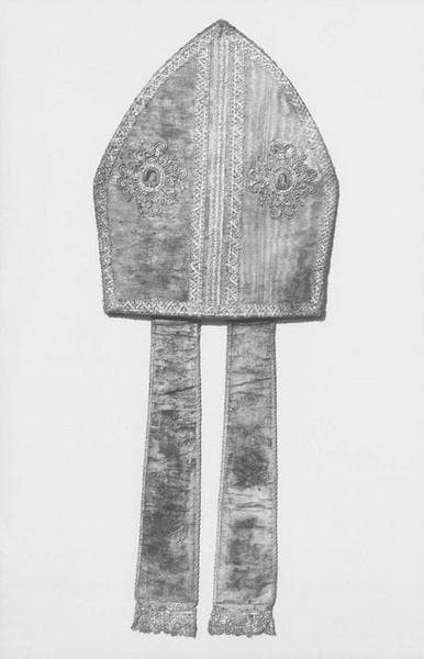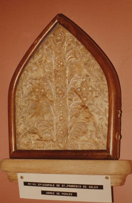 Une mitre brodée de deux médaillons ayant appartenu à saint François de Sales et deux mitres qui ont dû appartenir à Charles Auguste de Sales, neveu et successeur de saint François de Sales.