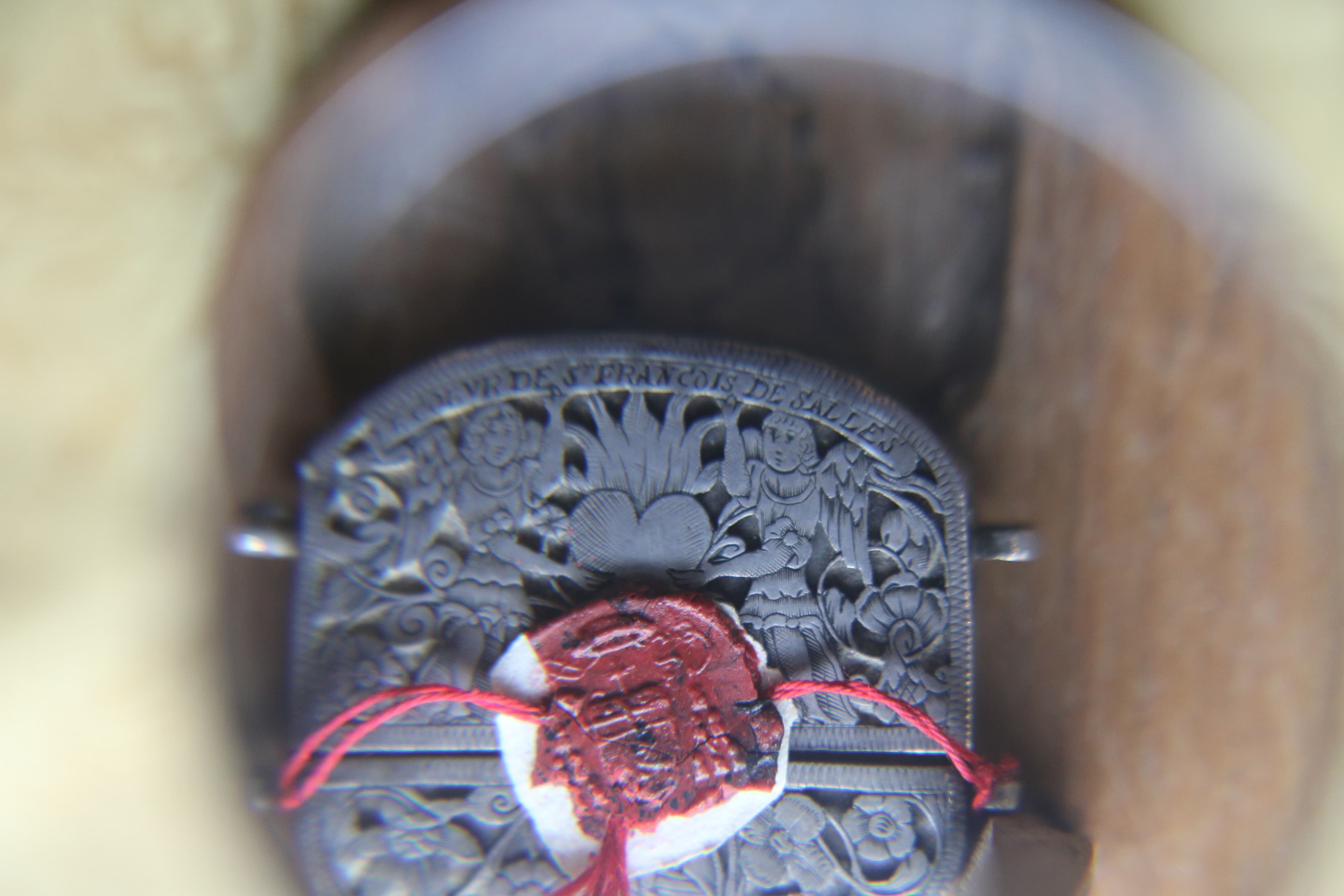 Etui à ciseaux reliquaire contenant une partie du coeur de saint François de Sales.