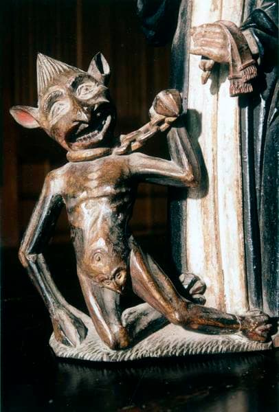 groupe sculpté : saint Bernard de Menthon le diable (œuvre volée)