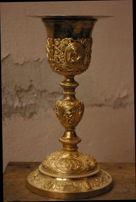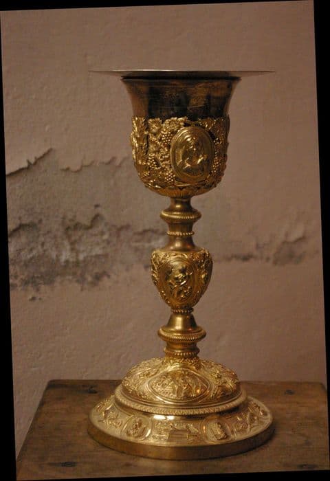Plusieurs médaillons figuratifs ornent le bol du calice, le noeud et le pied.