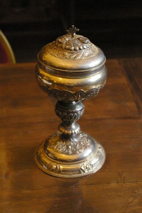 Poinçon d'orfèvre (sous le pied) ; inscription (sous le pied, contemporaine) : CATHE(DRALE).