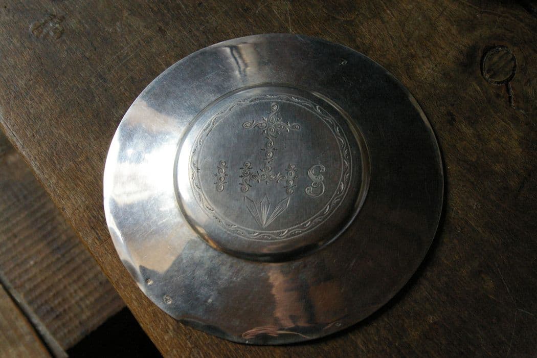Le calice et la patène sont conservés dans leur étui en cuir d'origine.