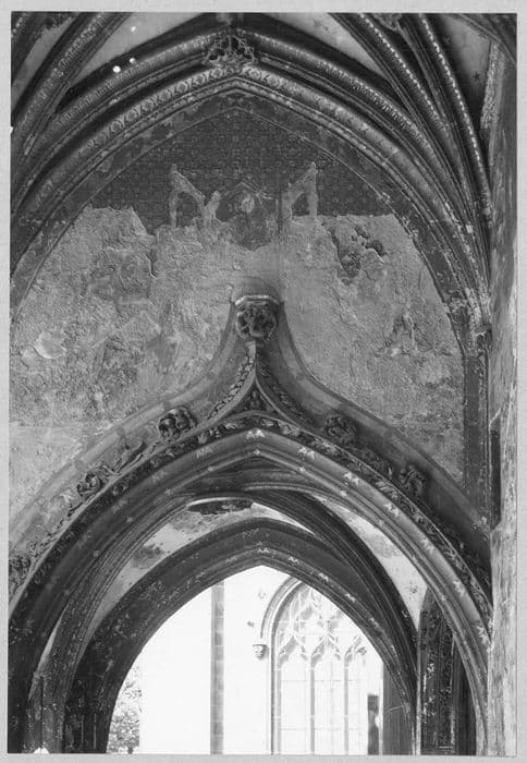 POP | Plateforme ouverte du patrimoinepeinture monumentale du porche : Deux saints écrivant, agenouillés devant une image de la Vierge