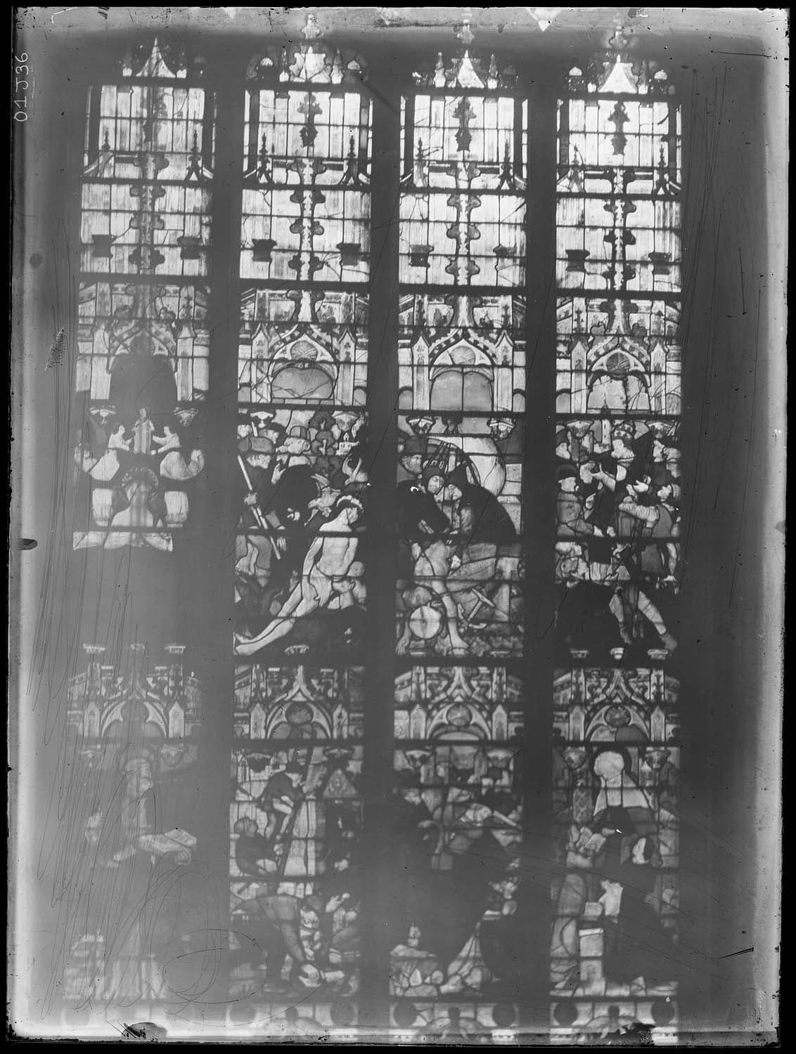 POP | Plateforme ouverte du patrimoineverrières du transept gauche : Scènes de martyres, saint Pierre, sainte Anne, Vierge et une donatrice construction d'une église