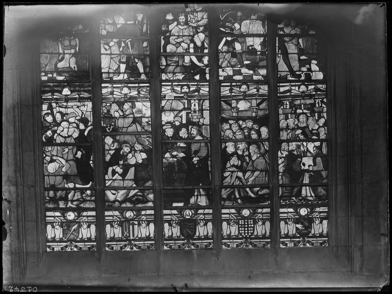 POP | Plateforme ouverte du patrimoineverrière du transept gauche : Scènes de la Passion, Dieu remet à Moïse les tables de la Loi, Abraham et Melchisedec