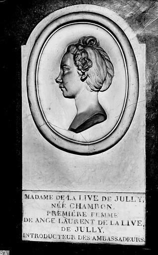 monument funéraire de Mme de la Live de Jully, née Chambon, première femme de M. Ange-Laurent de la Live de Jully, introducteur des ambassadeurs : médaillon