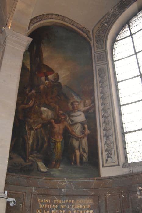 peinture monumentale de la chapelle des fonts baptismaux : Saint Philippe baptisant l'eunuque de la reine Candace