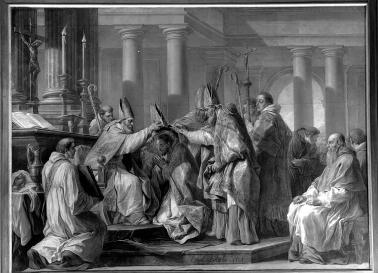ensemble de 7 tableaux : Scènes de la vie de saint Augustin, Louis XIII dédiant l'église Notre-Dame des Victoires à la Vierge
