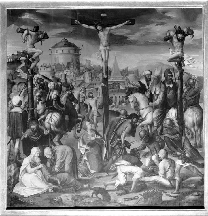 3 tableaux : Le Calvaire, Le Christ allant au calvaire, La Descente de Croix