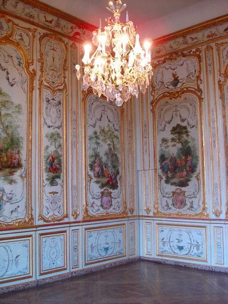 Grand cabinet décoré de peintures par Christophe Huet, un des panneaux autrefois peint sur une porte a été remplacé par une peinture de Galland. Ancien oratoire composé de 6 grands panneaux (et 1 moderne refait) et 6 petits panneaux.