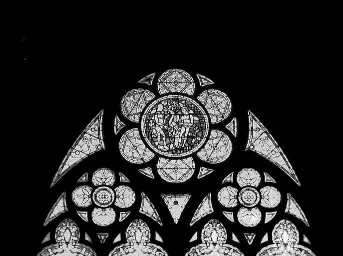 POP | Plateforme ouverte du patrimoine2 verrières de la chapelle Saint-Guillaume : Adam et Eve, La Corporation des bouchers