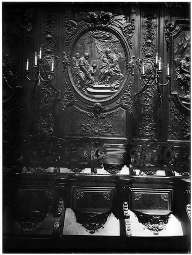 Eléments provenant des stalles et des lambris du choeur, chêne de Hollande.
