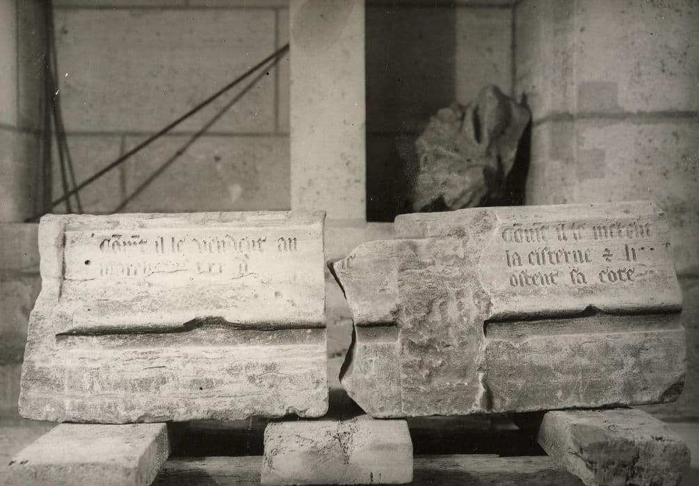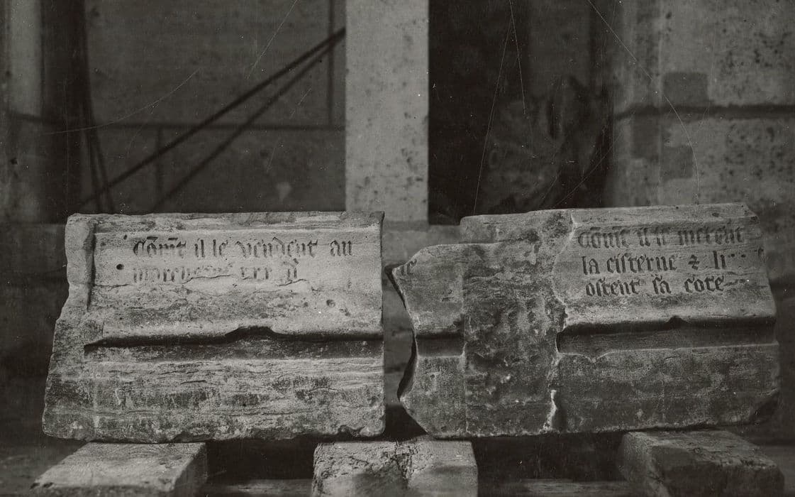 8 fragments avec inscriptions provenant de la clôture du choeur : socles VIII et IX, n°78 à 85 (le n°80 a disparu en 1976).
