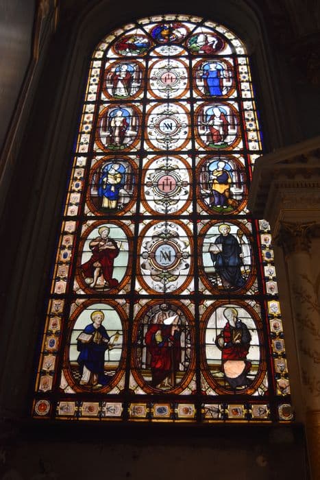 POP | Plateforme ouverte du patrimoineverrière de la chapelle de la Vierge : Saint Jean-Baptiste, Saint Pierre, Saint André, Saint Paul, Saint Merry, Les Vertus