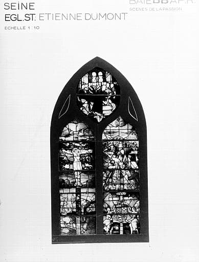 POP | Plateforme ouverte du patrimoineverrière de la nef, 2e fenêtre côté gauche : Christ en croix, La Descente de Croix, Le Lavement des pieds