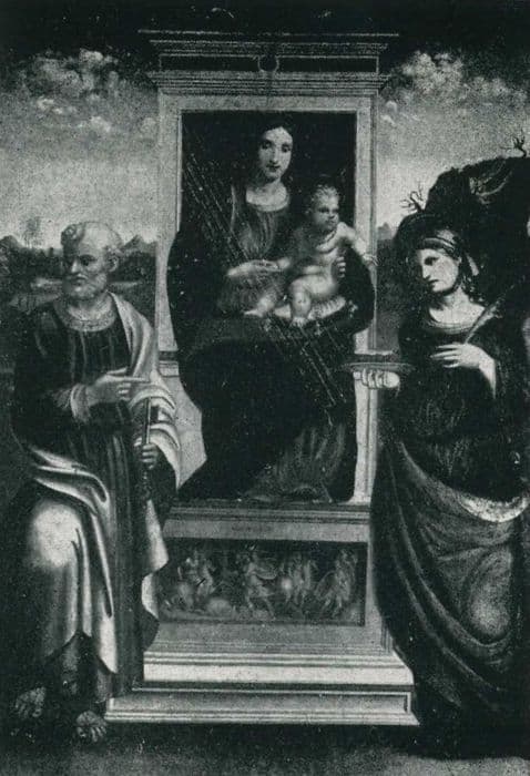tableau : La Vierge et l'Enfant Jésus entre saint Pierre et sainte Lucie