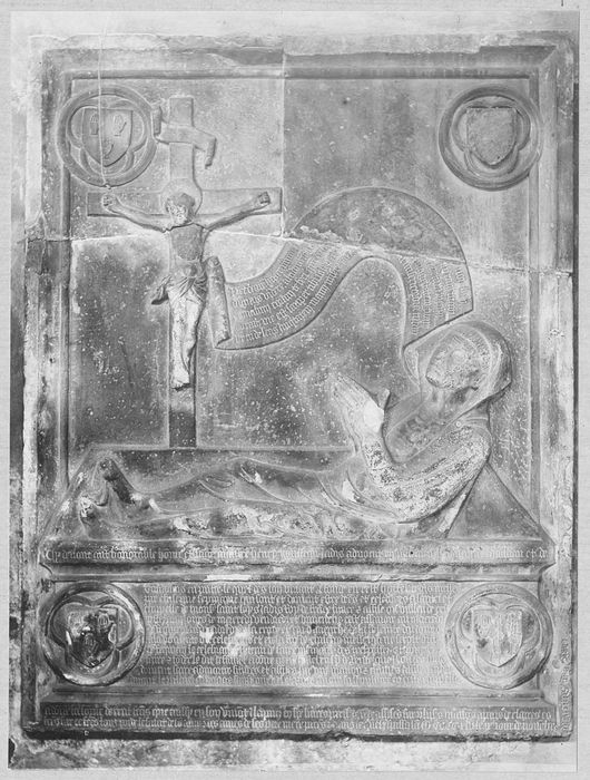 H. Rousseau, avocat au Parlement, seigneur de Chaillot, est mort en 1445. Provenant de la chapelle Saint-Blaise et Saint-Louis, transféré à Saint-Julien après la démolition de cette chapelle.