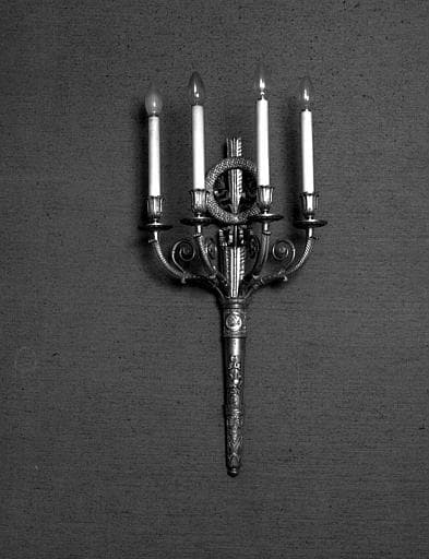 2 paires d'appliques à quatre lumières : carquois duquel sortent les quatre bras de lumière et au milieu une flèche dans une couronne. Garde meubles n°52746.