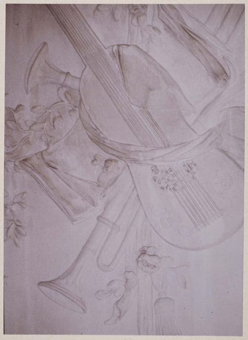 Cinq panneaux de boiseries sculptées : un de ces panneaux représentent un vase biblique entouré d'attributs. Le motif des autres panneaux se compose d'un chandelier (avec flammes...).