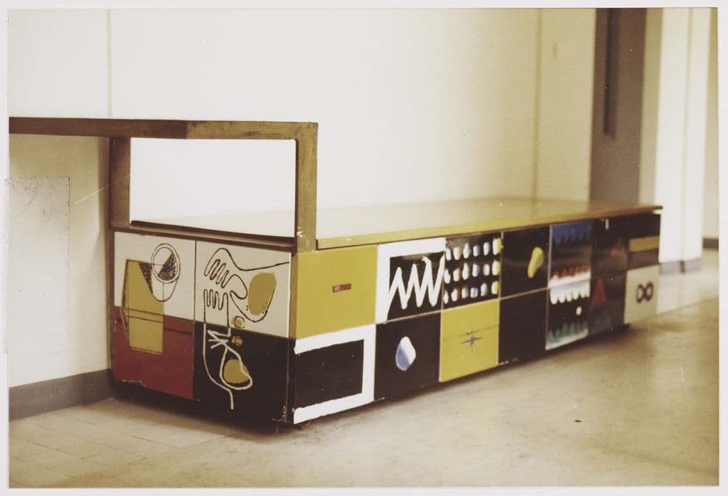 Banquette à laquelle s'attache une petite table (fonctions combinées).