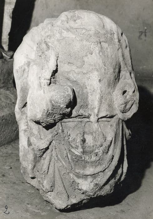 Fragment (partie supérieure des corps, les têtes manquent) provenant vraisemblablement du jubé : Cortège des Elus ? Socle I, n°2.